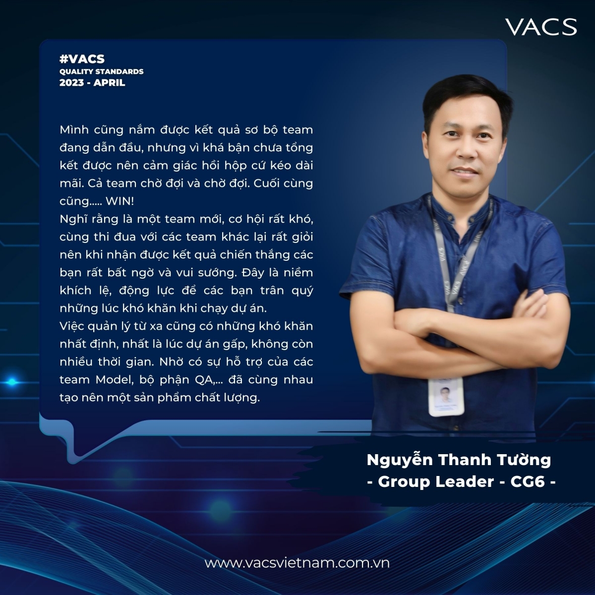 Team GL Thanh Tường - PL Nhật Anh - TL Viết Quang đã trở thành quán quân của sự kiện VACS Quality Standards Tháng 4.